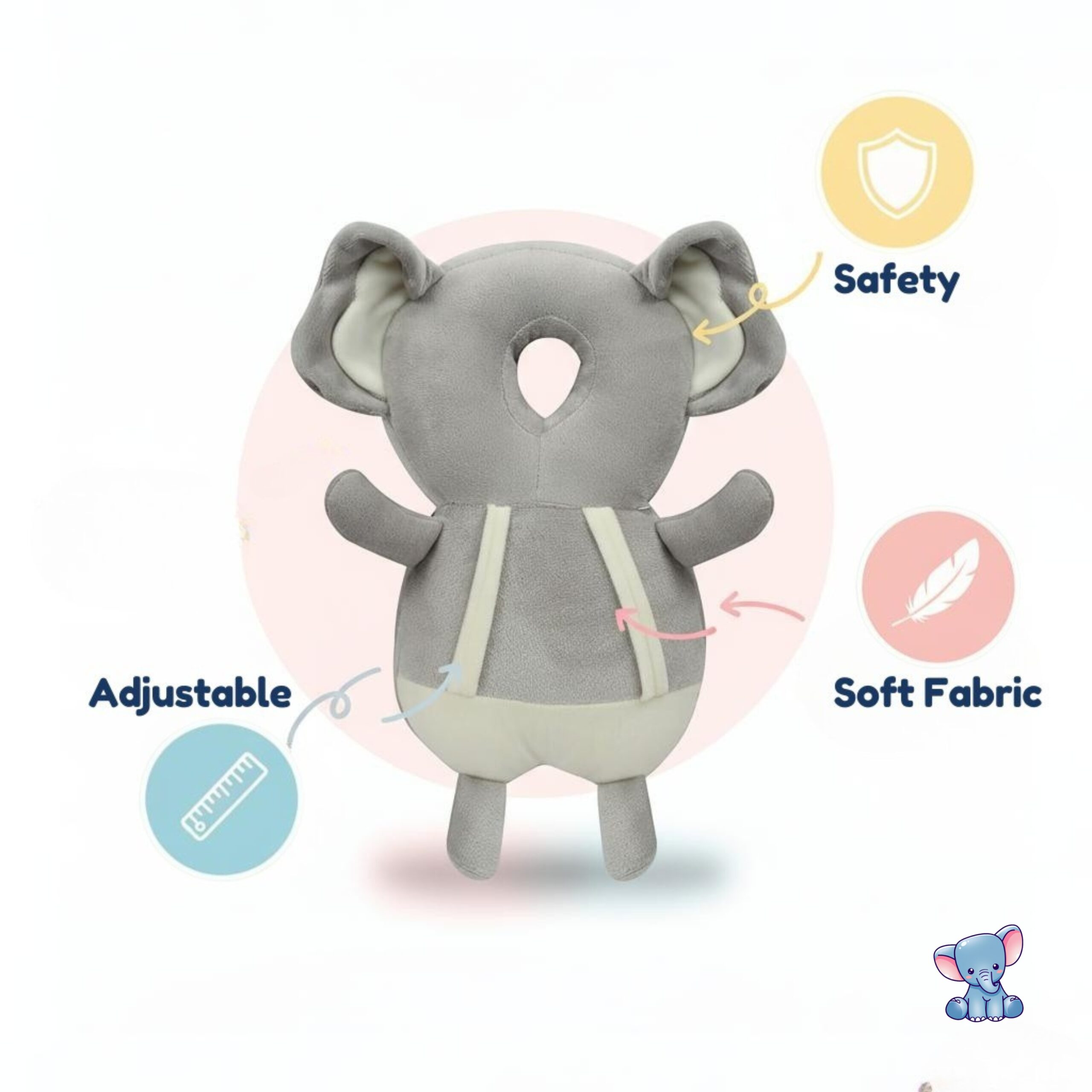 Cotton Baby Head Protector Cushion Plush Soft Toy Early Learning Toy Fall Protection Baby Head Protector Child Adjustable Shoulder Strap (Grey Bag)