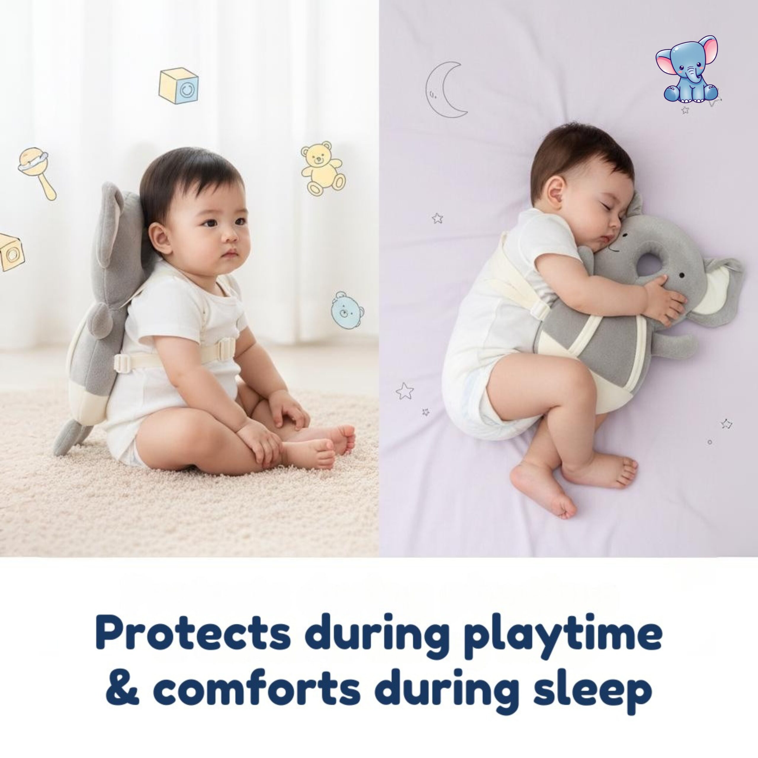 I recently purchased a baby head protector, and I’m really impressed with it. The material is soft, lightweight, and very comfortable for the baby to wear. It provides good cushioning and protects the head well during small falls or when the baby is learning to sit and walk. The straps are adjustable and gentle on the skin, and the design is cute too. Overall, it gives me peace of mind and is definitely a useful product for babies who are active and learning to move around.